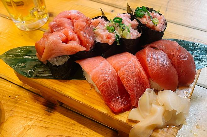 추천 메뉴는 단연 참치회 세트. 숭덩숭덩 썬 참치회, 참치초밥 그리고 참치마끼가 함께 나온다. 풍성한 조합이기도 하지만 실제 그 맛 또한 놀라울 정도로 뛰어나다. 좋은 참치를 먹을 때 느껴지는 살과 지방의 고소한 조화가 전해지는데, 심지어 가격도 엄청나게 저렴한 편. 거의 모든 테이블마다 하나씩은 시킬 정도고, 현지 주민들도 손가락 들어 추천하는 메뉴.
