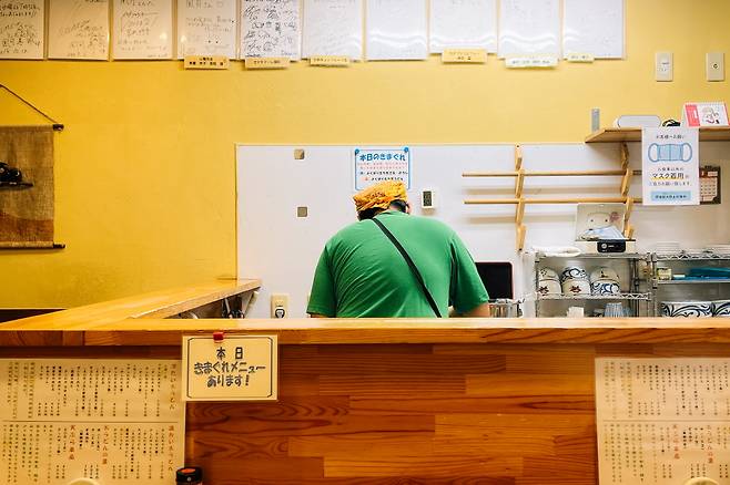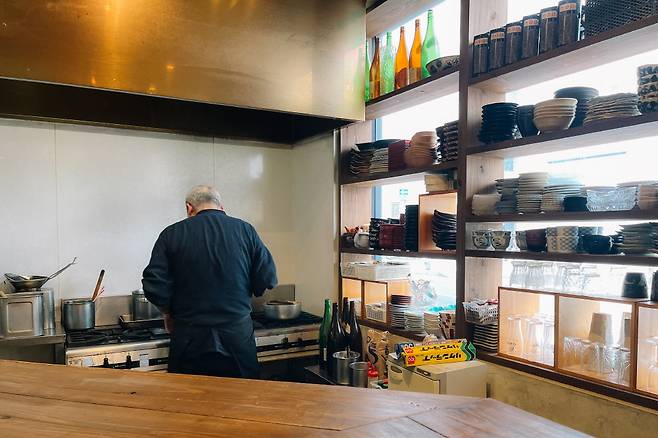 예상치 못한 곳에서 보석같은 가게를 발견할 때의 기쁨이란. 가게 앞에 달린 노렌(가림막)을 걷고 들어서면 내부 분위기가 예사롭지 않다. 아마도 주인장 할아버지의 약간 험상궂은 인상 때문일 텐데, 사실은 집중해서 요리를 하고 있을 뿐이니 신경쓰지 말자.