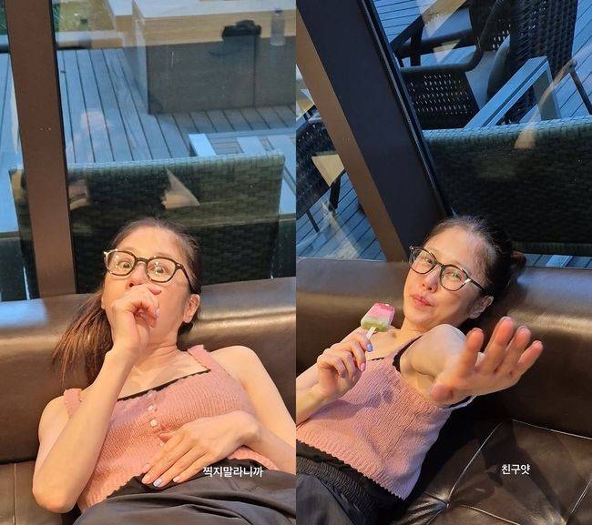공개된 사진 속 고현정은 소파에 누워 아이스크림을 먹고 있다. 고현정의 얼굴이 작은 건지, 아이스크림이 큰 건지 헷갈리게 만드는 사진으로, 머리를 묶고 안경을 쓰고 있는 고현정은 편안한 분위기에서 지인들과 즐거운 시간을 보내고 있다.