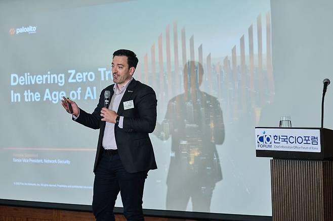그는 AI 시대 '제로 트러스트 보안'의 의미도 변해야 한다고 강조했다. 감메리 부사장은 "생성형 AI가 끊임없이 데이터를 교환하며 모델을 훈련한다"며 "내가 제공하는 데이터를 타인이 또 쓰는 셈"이라고 말했다. 생성형 AI도 하나의 보안 위협 주체로 인식해야 한다는 것이다. 이어 "에이전틱 AI는 이제 인간처럼 행동할 수 있어 더욱 위험하다"며 "완벽한 보안을 위해서는 에이전틱 AI에 허가권을 부여하는 것이 중요하게 됐다"고 말했다.