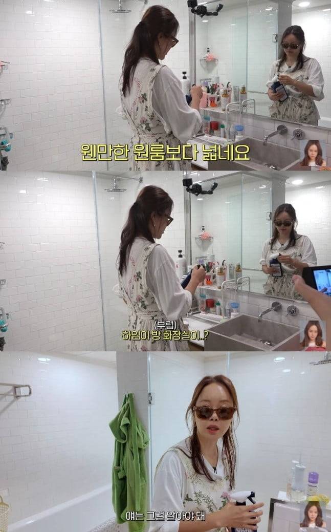 공개된 화장실에는 샤워부스, 큰 욕조 등이 갖춰져 있었다. 화장실을 구경하던 제작진이 "웬만한 원룸보다 화장실이 넓은 것 같다"고 말하자 백지영은 "그러냐. 얘는 그걸 알아야 한다"고 웃어 보였다.