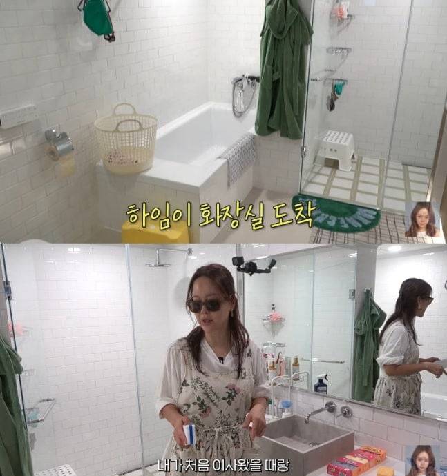 백지영은 딸 하임이의 전용 화장실도 공개했다. 화장실에 들어간 백지영은 "아침에 일어나서 여기서 씻고 저녁에 자기 전에 또 샤워한다"고 말했다. 이어 그는 "청소를 자주 하는 편이긴 하다. 애가 쓰니까 자주 한다. 배수구 있는 쪽이나 군데군데 저런 때를 처리해야 한다"고 덧붙였다.