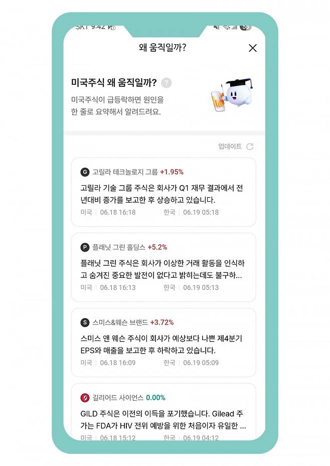 실시간 종목 급등락 이슈를 투자자의 눈높이에 맞춰 바로 요약해주는 서비스도 더했다. NH는 이를 위해 미국의 금융 콘텐츠 플랫폼 ‘벤징가’와 제휴를 맺었다. 벤징가는 MAU 1400만 명의 미국 실시간 뉴스 기반 정보 서비스로 기업공시, 속보, 실적 등 시세에 영향을 미치는 단기 정보를 초 단위로 전송한다. 강 대표는 “벤징가는 실시간 속보를 전달하는 가장 빠른 플랫폼 중 하나”라며 “급격한 시세 변동이 발생했을 때 그 이유를 파악해주는 서비스”라고 설명했다.