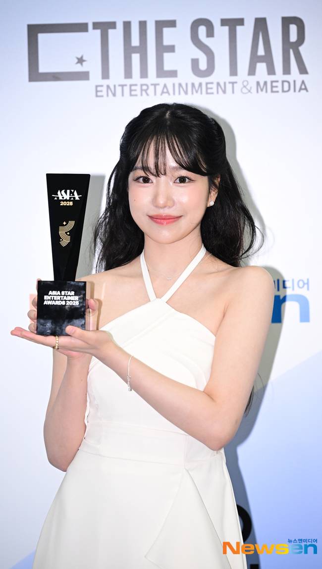 이날 새하얀 드레스로 여신 자태를 뽐내며 집중 스포트라이트를 받은 조유리는 "존경하는 선배님들과 함께 배우로서 시상식에 참석하게 되어 정말 영광이었다. 소중한 상을 주신 ASEA 관계자 분들과, 이 상 받을 수 있도록 도움 주신 모든 분들께 감사드린다"고 다시 한번 감사 인사를 전했다.