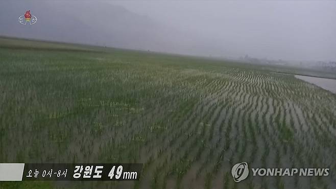 (서울=연합뉴스) 북한 전역에 저기압과 불안정한 대기의 영향으로 비와 소낙비가 내려 오늘 0시부터 8시까지 전국 평균 38㎜의 강수량을 기록했다고 조선중앙TV가 20일 보도했다. 평양시는 65㎜, 남포시는 94㎜로 가장 많은 비가 내렸으며, 평안남도 61㎜, 황해남도와 황해북도 각각 54㎜, 강원도 49㎜의 강수량을 기록했다. [조선중앙TV화면] 2025.6.20