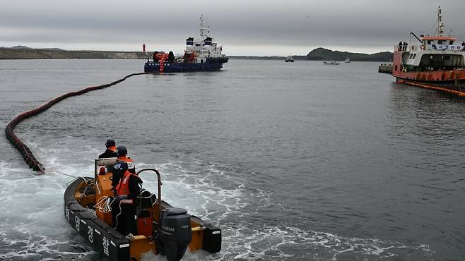 서귀포해양경찰서는 어제(19일) 오후 2시쯤 화순항 인근 해상에서 해경과 해군 등 150여 명이 참석한 가운데 민관군 합동 해상 방제 훈련을 실시했습니다.