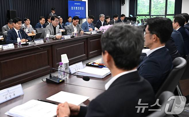 (서울=뉴스1) 황기선 기자 = 이한주 국정기획위원장이 20일 오전 서울 종로구 정부서울청사 창성동 별관에서 열린 검찰청 업무보고에서 모두발언을 하고 있다. (공동취재) 2025.6.20/뉴스1