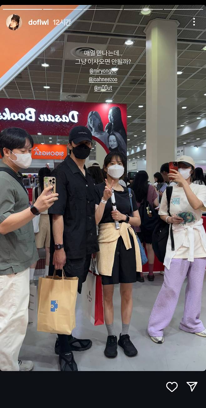 19일 윤승아는 자신의 SNS 스토리를 통해 서울국제도서전 행사장을 찾은 모습을 공개했다.