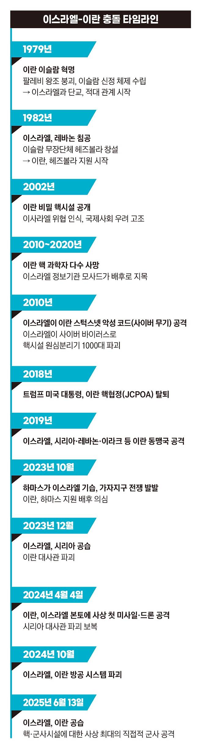 이스라엘이 ‘중동 질서 재편’에 나서는 이유는 이란과 오랜 기간 이어져 온 적대 관계 때문이다. 이란이 미국, 이스라엘과 우호적인 관계였던 시절도 있었다. 1925년부터 1979년까지 이어졌던 이란의 팔라비 왕조는 1960년대부터 이른바 ‘백색혁명’을 통해 급속한 서구화를 추진했다. 친미정책을 이어가고 이스라엘과도 우호관계를 유지하며 경제성장을 주도하기도 했다.