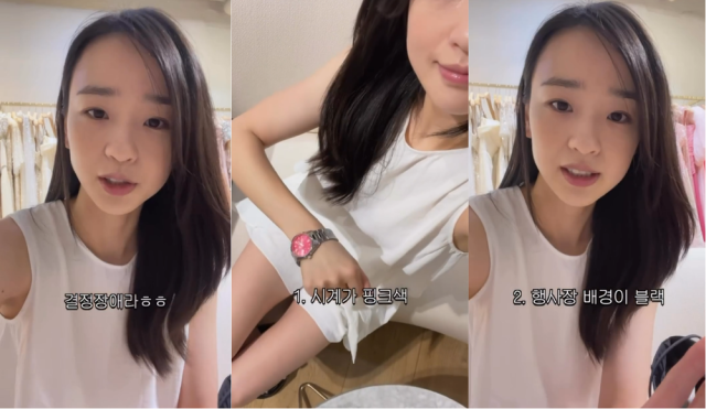 그는 "첫 번째로 시계가 핑크색, 두 번째 행사장 배경이 찐한 블랙이에요. 그래서 제가 검은 의상을 입었을 때 제가 안 보일까 봐 좀 걱정이고, 결정 장애라 못 고르겠어요"라며 유쾌하게 고민을 토로했다. 그러면서 "어떤 게 마음에 드시는지, 댓글로 남겨주시면 제가 한 번 골라보겠습니다"라며 누리꾼들의 조언을 구했다.
