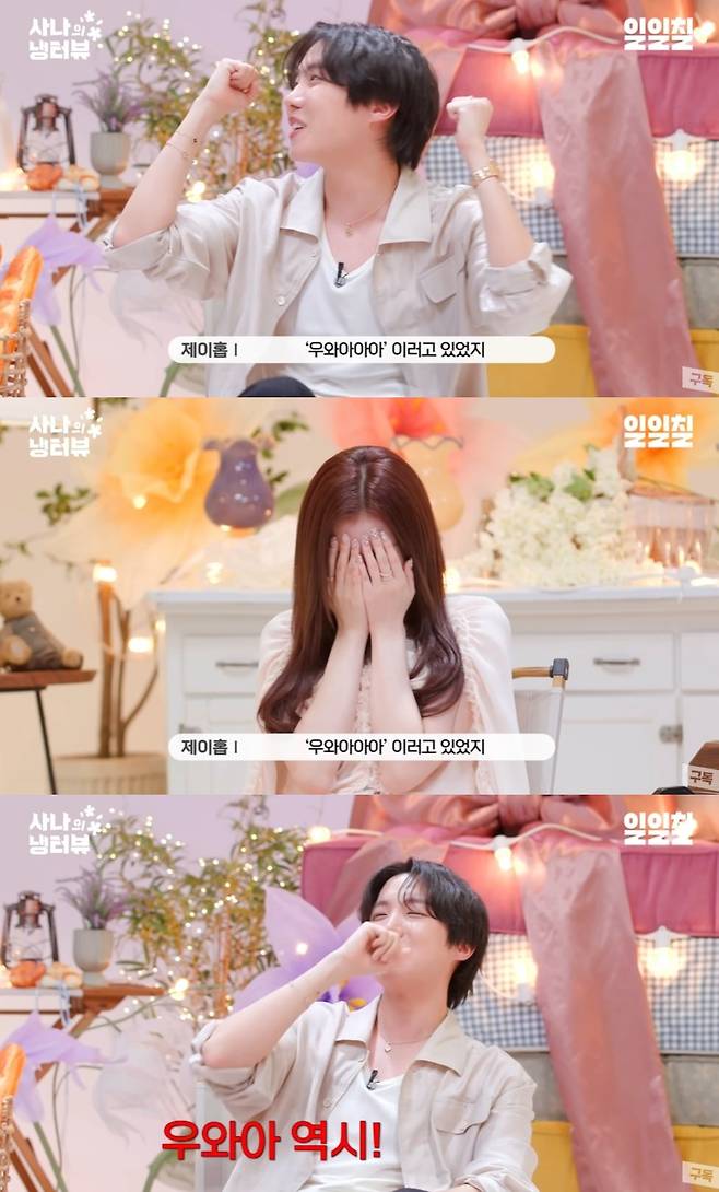 그러자 제이홉은 "몇 개월 전이면 나는 군대에서 트와이스 영상 보면서 '우와아' 이러고 있었다"고 실토해 현장을 폭소케 했다.