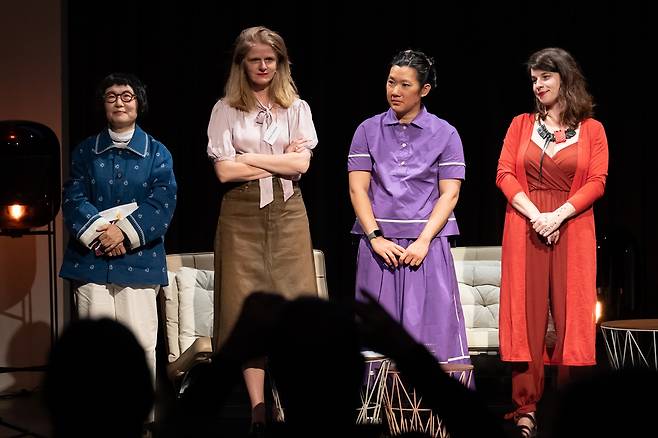 | ▲ "유령을 쓰는 것" 프로그램에 김혜순 시인과 함께 참여한 시인들 왼쪽부터 김혜순 시인, 베트남계 미국 시인 다이애나 코이 응우옌 (Diana Khoi Nguyen), 크로아티아 시인, 모니카 헤르체그 (Monika Herceg), 네덜란드 시인, 사샤 얀선 (Sasja Janssen)이 함게 참여했다. |