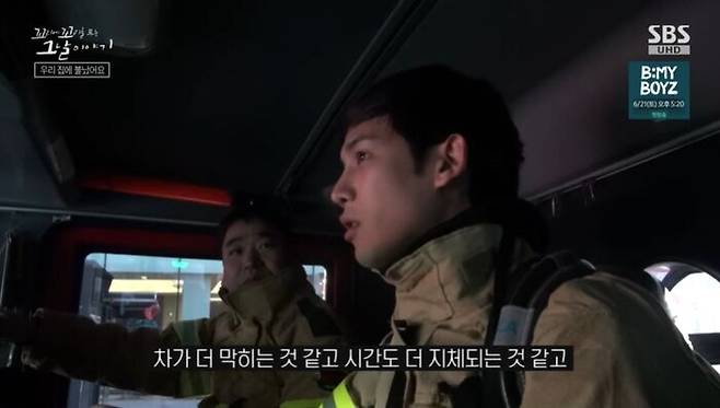 "어찌나 입이 바짝바짝 마르던지 제가 그때 무슨 생각을 했냐면, 우리 집이랑 제일 가까운 데는 무조건 강남소방서인데, 그렇다 함은 우리가 가서 불을 끄지 않으면 누군가 끌 사람이 없다. 무조건 우리가 첫 번째다, 그러면 무조건 빨리 가서 불을 꺼야 된다…"