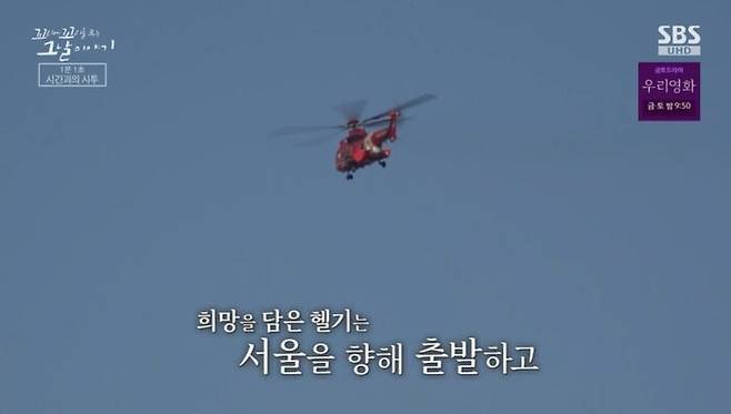 의료진과 종순 씨, 그리고 가족들이 헬기에 올라. 가족들의 희망을 가득 담고 헬기는 서울로 향해. 지금 시각이 오후 4시 30분이야.