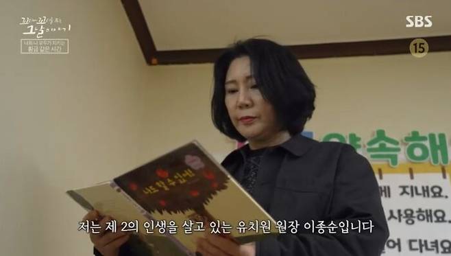 "저는 제2의 인생을 살고 있는 유치원 원장 이종순입니다. 애들하고 있는 게 제 삶의 원동력이에요. 애들이 없으면 제가 과연 이 자리에 있을까 싶을 정도로 애들하고 있으니까 즐겁고 행복합니다."