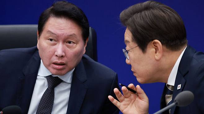 최태원 SK그룹 회장이 AI(인공지능) 산업과 관련해 이재명 대통령에게 "정부가 AI 시장의 수요자가 돼달라"며 전폭적인 지원을 건의했습니다.