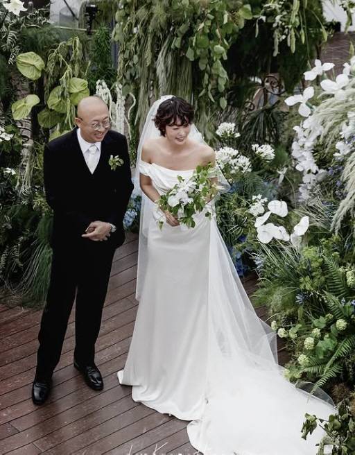 공개된 사진에서 최여진은 하우스 오브 에이미의 오프숄더 드레스를 입고 우아한 매력을 뽐냈다. 또 결혼식 2부에서는 미니 드레스에 운동화를 신은 '힙'한 신부로 변신해 눈길을 끌었다.