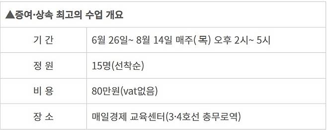 [MK 세무 교육] 증여·상속의 모든 것 ‘12기’ 내주 26일 개강