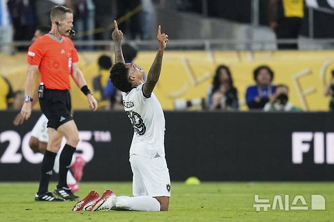 보타포구의 이고르 제주스가 19일(현지 시간) 미 캘리포니아주 패서디나 로즈볼 스타디움에서 열린 2025 국제축구연맹(FIFA) 클럽 월드컵 조별리그 B조 2차전 파리 생제르맹(PSG, 프랑스)과의 경기 전반 36분 선제골을 넣은 후 세리머니하고 있다.