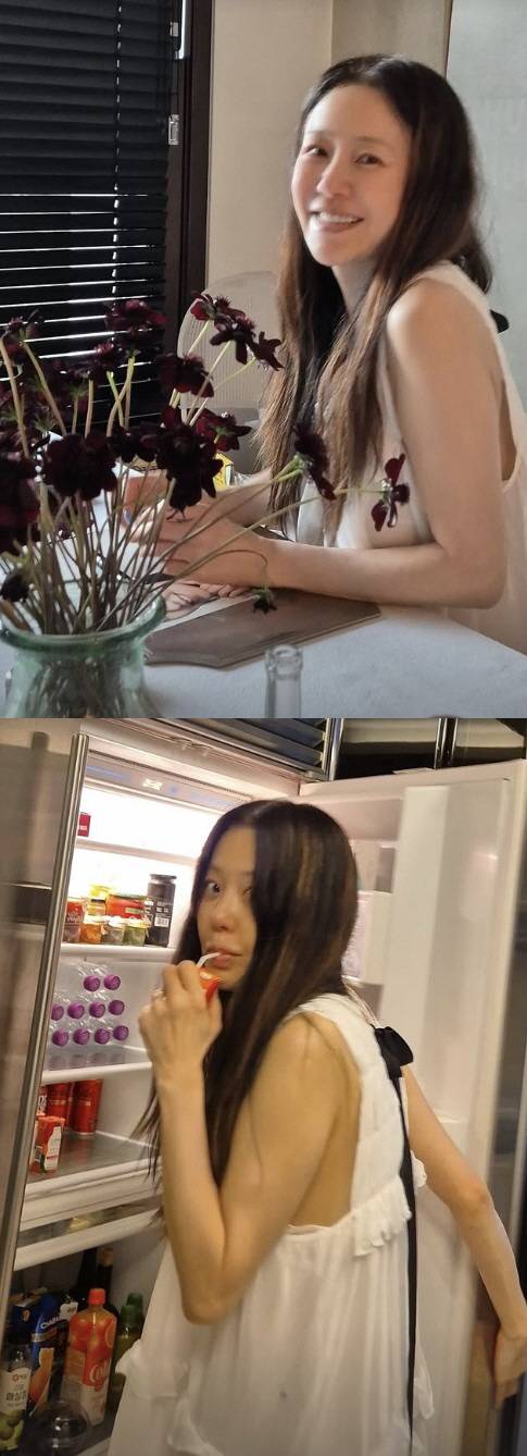 고현정은 20일 집에서 찍은 두 장의 사진을 공개했다.