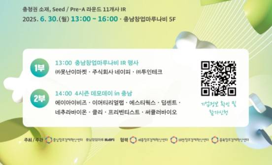 4시즌 데모데이는 충남, 세종, 대전, 충북 등 충청권역 창조경제혁신센터들이 지역의 창업 생태계를 활성화하기 위해 분기별로 우수 스타트업을 공동 발굴하고 지원하는 프로그램이다. 30일은 올해 첫 번째 시즌의 IR 피칭 행사로 충남창경센터가 주관을 맡아 충남창업마루나비에서 진행한다.