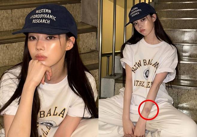 이 가운데, 윈터에 팔에 선명한 피멍이 포착돼 팬들의 걱정을 샀다. 가녀린 손목을 가득 채운 커다란 피멍이 안타까움을 자아냈다.
