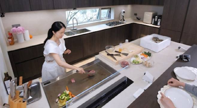 얼마 전 새로운 집으로 이사한 이정현은 꿈에 그리던 요리용 철판을 주방에 설치했다고.