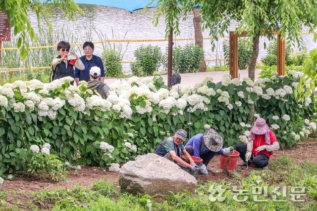 공주 유구 색동수국정원 꽃 축제 준비