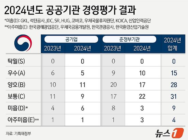 [그래픽]2024년도 공공기관 경영평가 결과