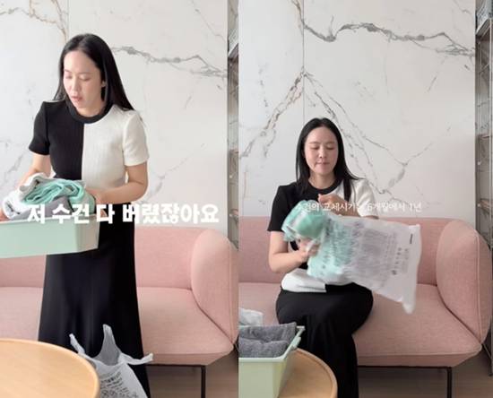 20일 박지윤은 "오래된 수건 교체해야 하는 이유"라는 글과 함께 수건을 교체하는 영상을 올렸다.