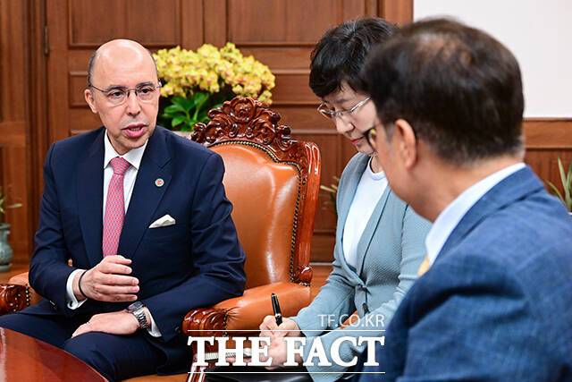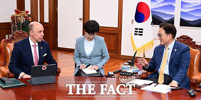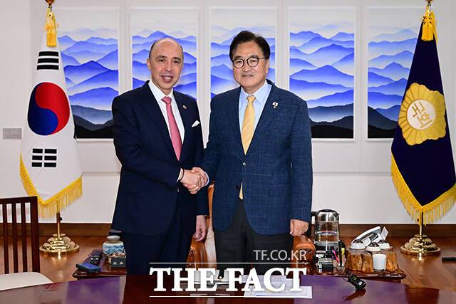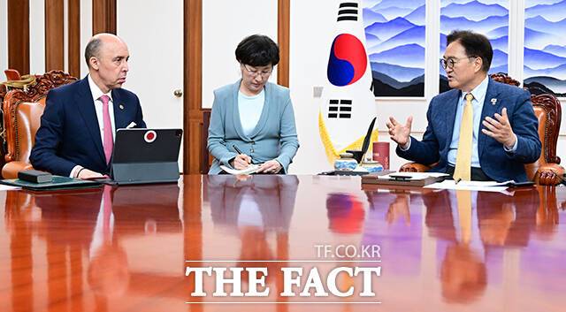 우원식 국회의장, 모로코 대사 접견 "AI·철도·방산 교류 확대 기대" [TF사진관]