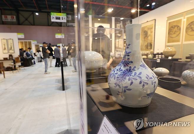 (서울=연합뉴스) 이재희 기자 = 20일 서울 강남구 세텍에서 열린 '2025 한국고미술페어'에서 참관객이 전시를 둘러보고 있다. 2025.6.20