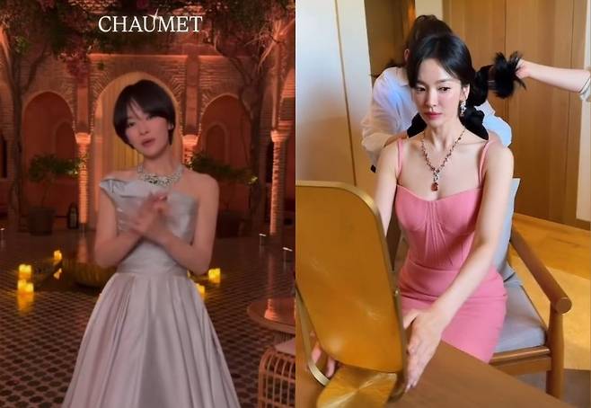 이어지는 영상에서는 긴 머리에 핑크 드레스를 입은 송혜교의 모습이 눈에 띄었다.