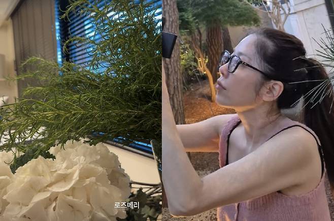 고현정은 화분에 가지런히 담긴 장미부터 라벤다 한 다발, 로즈메리 등 정적이면서도 감각적인 플렌테리어로 집을 꾸몄다.