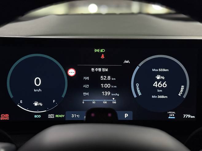 앞선 1차 시승구간보다 더 멀고 복잡한 구간이었음에도, 연비는 30%이상 높게 나왔다. 1 kg당 139km, 연료 탱크를 가득 채우면 무려 929.9km를 달릴수 있는 연비였다. 기자와 비슷한 연비를 기록한 참가자들도 7명이나 됐다. 이들 가운데 참가자 2명은 각각 1kg당 162km와 156km의 연비를 기록했다. 이를 단순 환산하면, 1회 충전으로 무려 1083.78km와 1043.64km를 달릴수 있다는 계산이 나온다. 이들 대로라면, 1000km 꿈의 주행이 현실이 되는 셈이다.