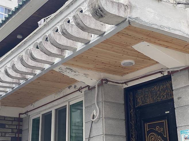 | ▲ 지난해 누수가 발생한 처마 밑을 새로 공사했다. 그러나 올해 긴 장마에 누수가 발생할까 걱정이다. |