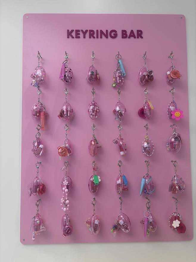 2층은 체험 중심 공간이다. 직접 고른 참(Charm)으로 키링을 제작할 수 있는 DIY 코너, 립스틱 케이스에 이니셜을 새겨 넣는 각인 서비스, 어뮤즈 굿즈 진열대, 포토존 등이 배치돼 있다.