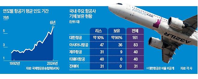 양대 항공기 제조업체의 생산 차질은 국내 항공사에 직접적인 영향을 주고 있다. 대한항공은 연내 보잉 항공기 30대를 들여오기로 했지만 최근 2027년으로 늦췄다. 아시아나항공도 지난해 에어버스 여객기 30대 도입 기한을 2031년으로 미뤘다. 제주항공은 계약상 보잉 여객기 40대를 전부 넘겨받는 시점이 2027년이지만 실제론 2029년에나 인도가 끝날 것으로 예상하고 있다.