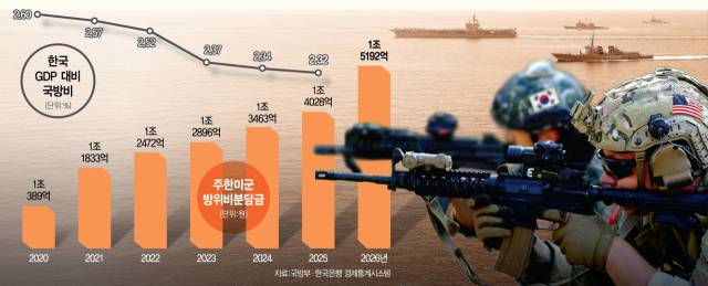 국방부는 미국의 국방비 GDP 5% 기준에 난색을 표명하고 있다. 2025년 국방 예산은 61조 2469억 원으로 GDP 대비 2.32%에 이른다. 북한 핵 미사일 위협에 직면한 만큼 1% 안팎 수준인 선진국들에 비해서도 GDP 대비 국방 예산 비율은 훨씬 높다. 또 미국 국방부가 요구한 5% 수준 국방비 지출을 적용할 경우 한 해 국방비는 약 130조 원까지 늘어 60조 원 이상 규모를 키워야 하는 것은 현실적으로 쉽지 않다.