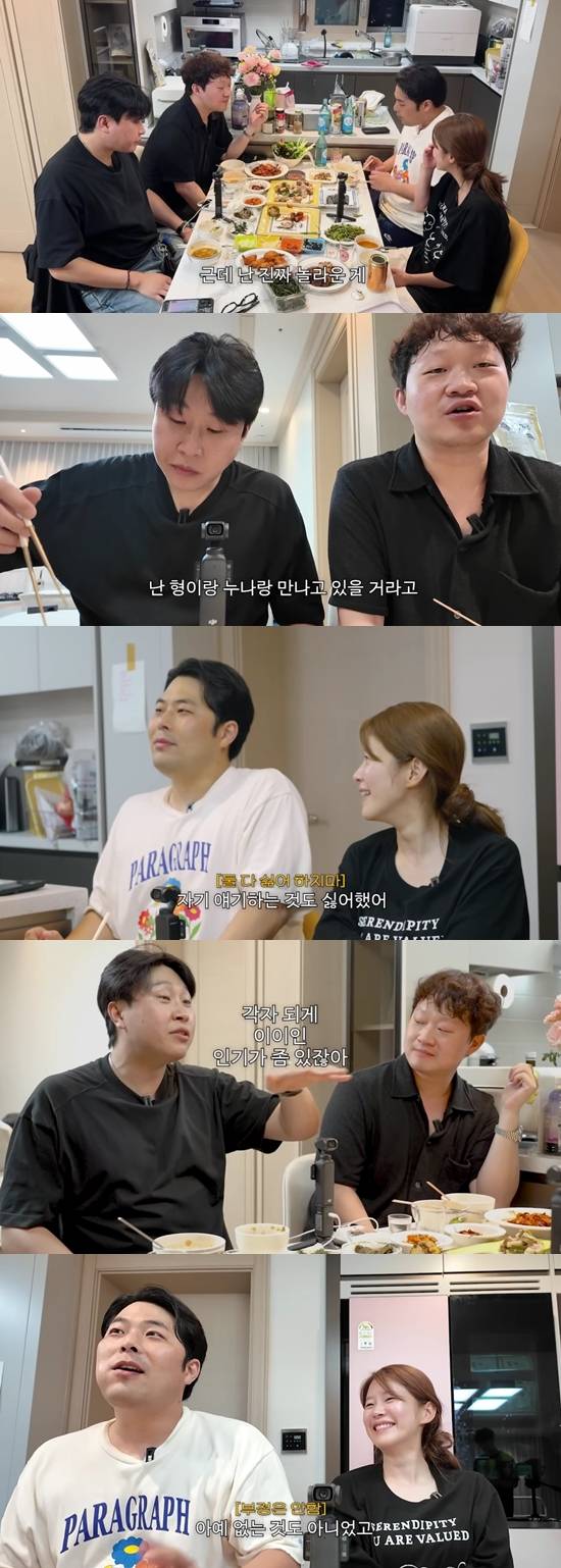 지난 19일 김승혜 유튜브 채널에는 '개그맨 동기였는데 형수님으로...? 대환장 집들이 시작합니다'라는 제목의 영상이 올라왔다. 영상에는 이용주, 정재형이 함께 출연했다.