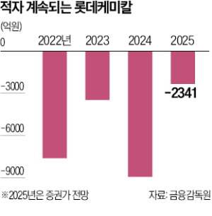 롯데케미칼도 다른 석유화학 회사처럼 이 영향을 직격탄으로 받았다. 2021년 1조5356억원의 영업이익을 내던 이 회사는 이듬해인 2022년 7626억원 영업적자로 돌아선 뒤 지난해 적자 규모를 8941억원으로 더 키웠다.