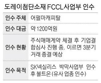 지난해 SK넥실리스 박막사업부를 인수한 이후 이뤄지는 볼트온(유사 업종 인수) 일환으로 분석된다. 20일 투자은행(IB) 업계에 따르면 어펄마캐피탈은 최근 도레이첨단소재 FCCL사업부를 인수하는 주식매매계약(SPA)을 체결했다. 인수 대금은 1200억원 수준이다.