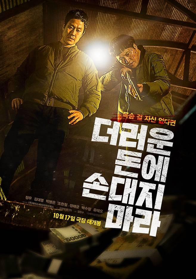영화 '더러운 돈에 손대지 마라'는 생계형 형사 명득(정우)과 동혁(김대명)이 부패한 조직의 검은 돈을 훔치려다 예기치 못한 사건에 휘말리는 과정을 그린다. 정의와 불의의 경계가 흐릿한 인물 설정과 욕망, 죄책감, 내면 갈등이 현실적으로 묘사돼 공감을 자아낸다. 특히 두 형사 사이 '수사'와 '뒷돈'의 이중생활이라는 신선한 설정은 기존 범죄 영화와 차별화된 재미를 선사한다.