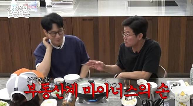 지석진은 20년 전 나영석에게 재개발 지역 부동산 투자를 권유했다고 떠올렸고 나영석은 "말은 잘하는데 그때 당시에도 이 형의 별명이 부동산계 마이너스의 손이었다. 20년 째 그 별명이다"라고 밝혔다.