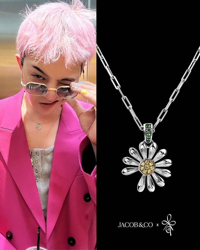 지난밤, 제이콥앤코는 지드래곤의 브랜드 피스마이너스원 의 미학을 담은 한정판 펜던트 컬렉션을 공개했는데요. 옐로 사파이어와 옐로 다이아몬드 & 파베 두 가지 에디션으로 이루어진 이번 컬렉션은 늘 그렇듯 지드래곤의 시그니처 모티프인 데이지를 적극 활용했죠.