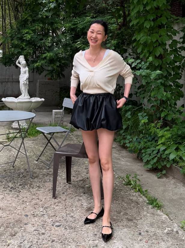 사진 속 장윤주는 베이지색 오버핏 재킷에 시스루 소재의 롱 스커트를 매치하여 우아하면서도 세련된 스타일을 선보였다. 또 다른 사진에서는 블랙 미니 쇼츠에 화이트 니트를 매치해 시크하면서도 발랄한 매력을 발산했다.