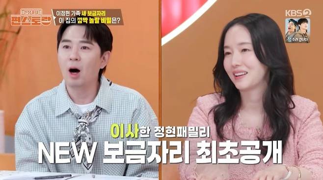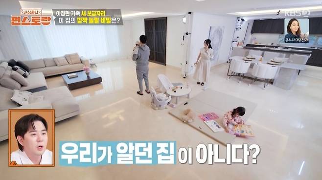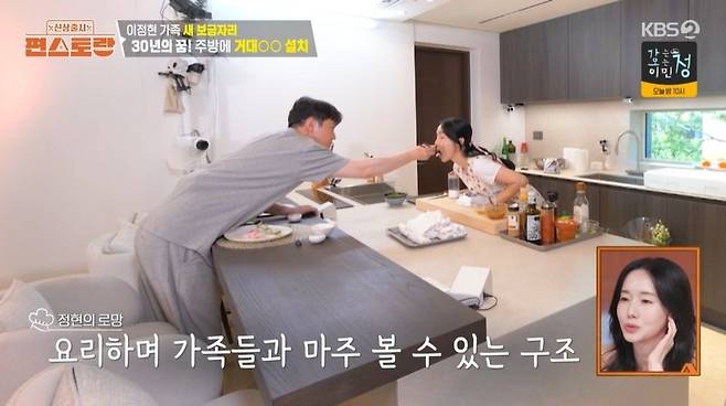 새로운 집을 공개한 이정현은 "신혼집에서 오래 살다가 새로운 공간으로 이사했다"라고 소개했다. 서아 방엔 미끄럼틀 2층 침대가 있었고, 서우 방엔 서아한테 물려받은 물건들이 가득했다. 이사한 집의 하이라이트는 주방으로, 홈바와 5구 화구 등이 있었다. 장민호는 "거의 레스토랑인데요?"라고 놀랐고, 이연복은 "주방만 봐도 요리를 사랑하는 사람의 주방"이라고 인정했다.