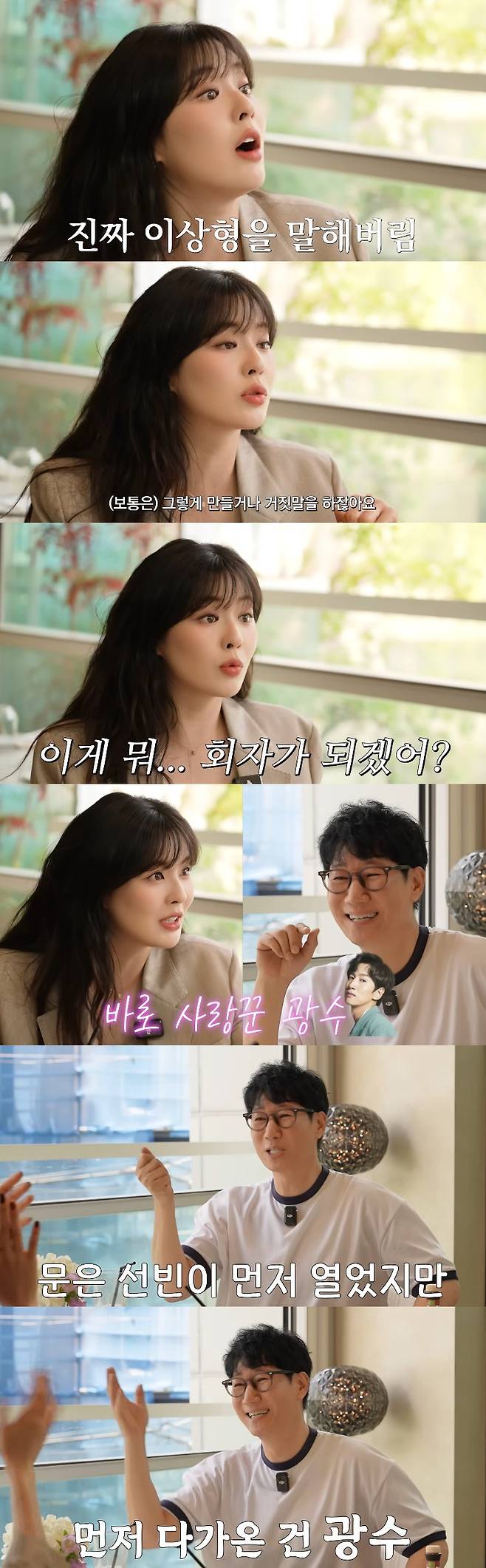 이에 지석진은 "네가 광수 이상형이라고 했잖아. 장난인 줄 알았다가 보다 보니까 진짜더라"라고 말했고, 이선빈은 "그게 어떻게 된 거냐면, 여기서 처음 밝힌다"라며 이광수와의 러브 스토리를 전격 공개했다.