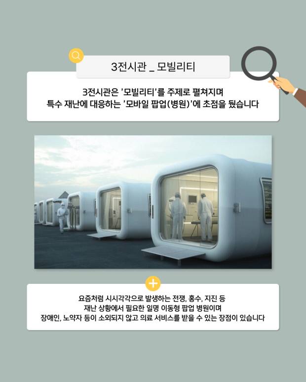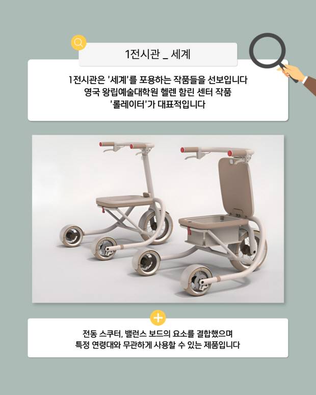 각각의 전시관은 포용디자인이라는 컨셉 아래 '세계', '삶', '모발리티', '미래'로 이뤄졌습니다.