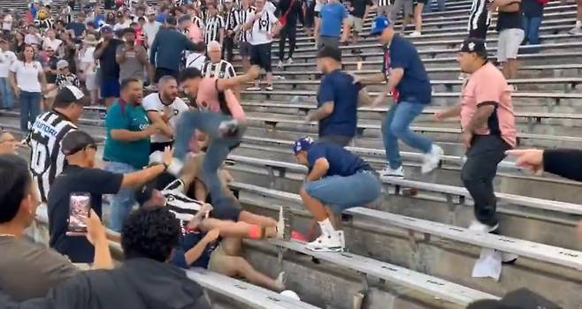 영국 매체 '더선'은 20일(한국시간) "국제축구연맹(FIFA) 클럽월드컵 경기 중 PSG 팬이 경기장에서 난투극을 벌이며 보타포구 서포터의 머리를 밟는 충격적인 순간이 나왔다"라고 보도했다.
